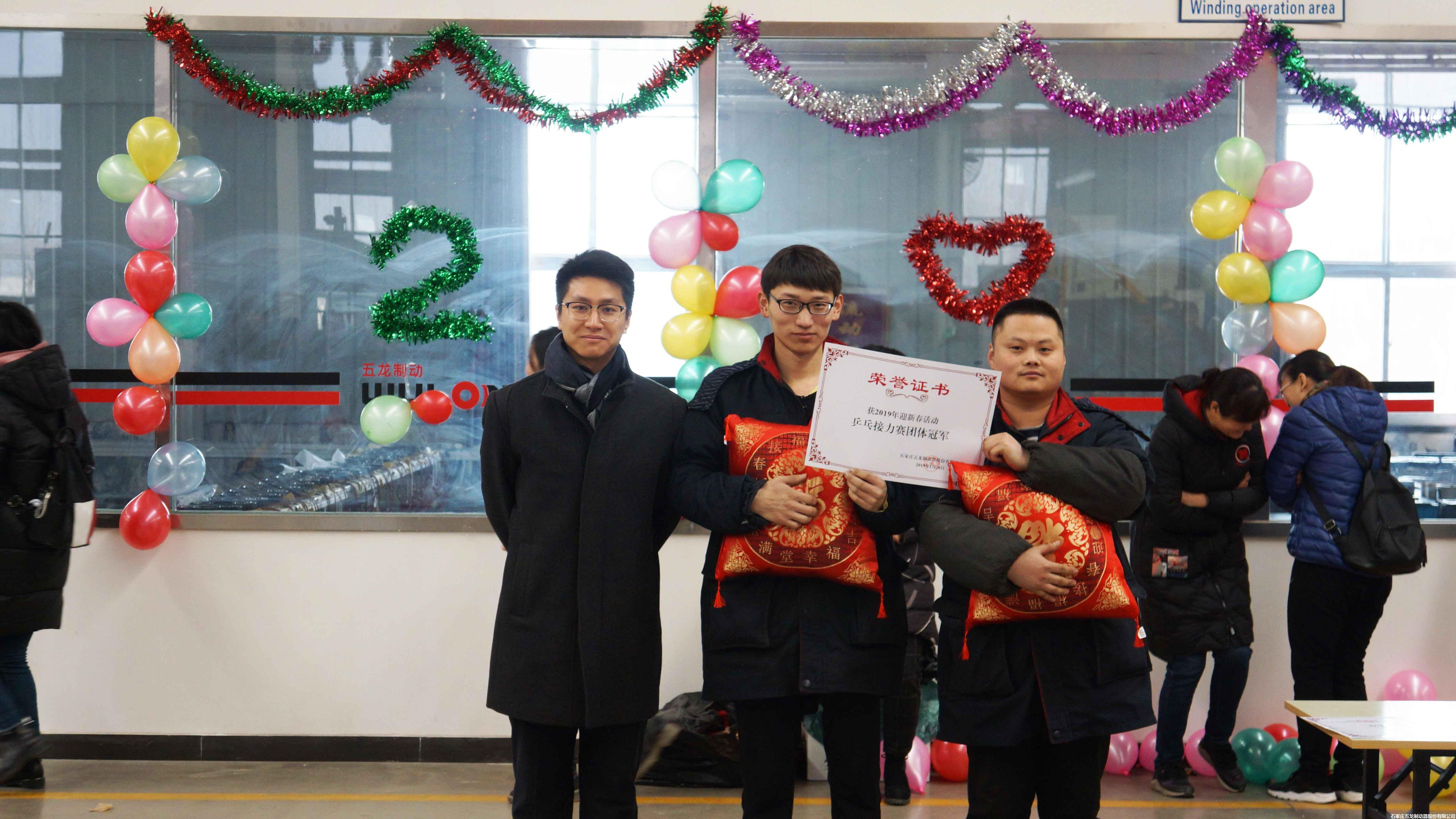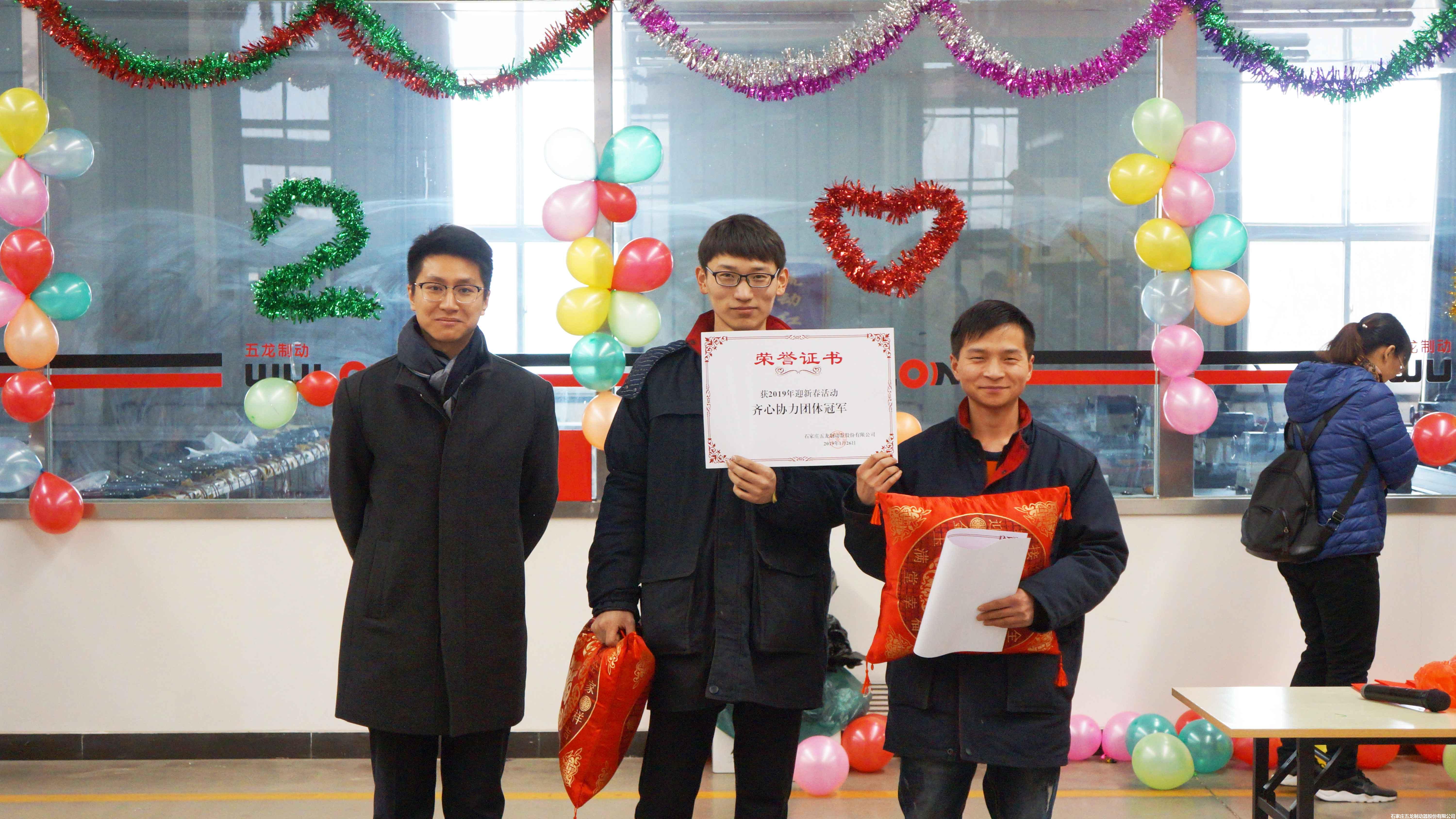 公司領(lǐng)導(dǎo)分別對(duì)迎春活動(dòng)冠軍頒獎(jiǎng)并合影留念。