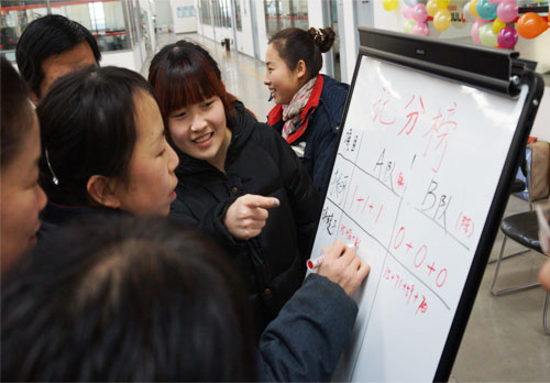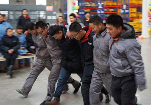 員工迎春活動分五項(xiàng)PK賽,由兩位副總分別帶領(lǐng)A、B兩隊(duì)進(jìn)行團(tuán)體撥河、團(tuán)體踢鍵子、團(tuán)體跳繩、團(tuán)體托乒乓球接力賽跑、團(tuán)體齊心協(xié)力賽。